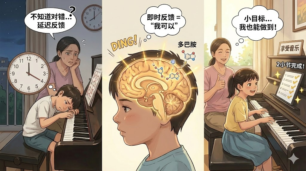 这就是内在动机的力量——当孩子觉得练琴是在"玩一个有挑战的游戏",坚持就不再需要意志力死磕。