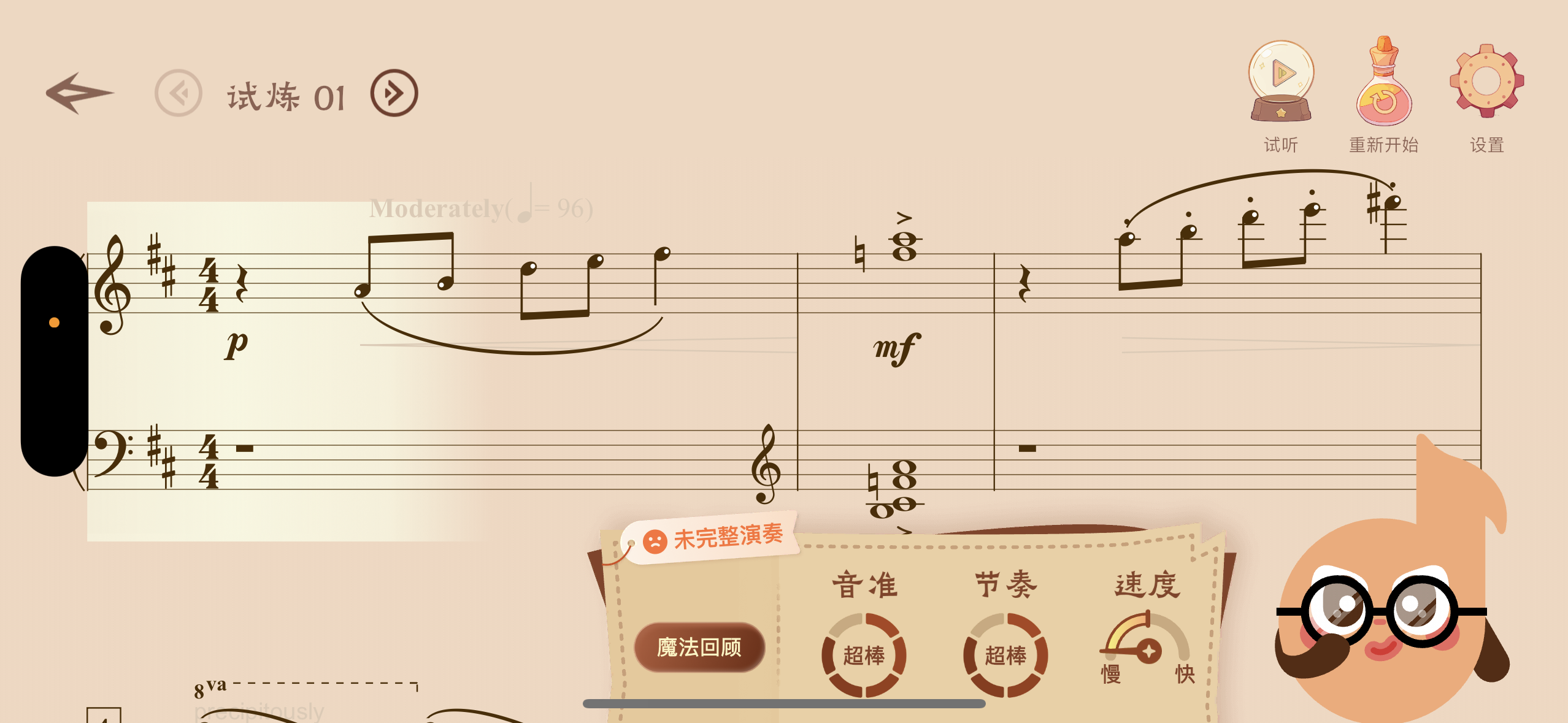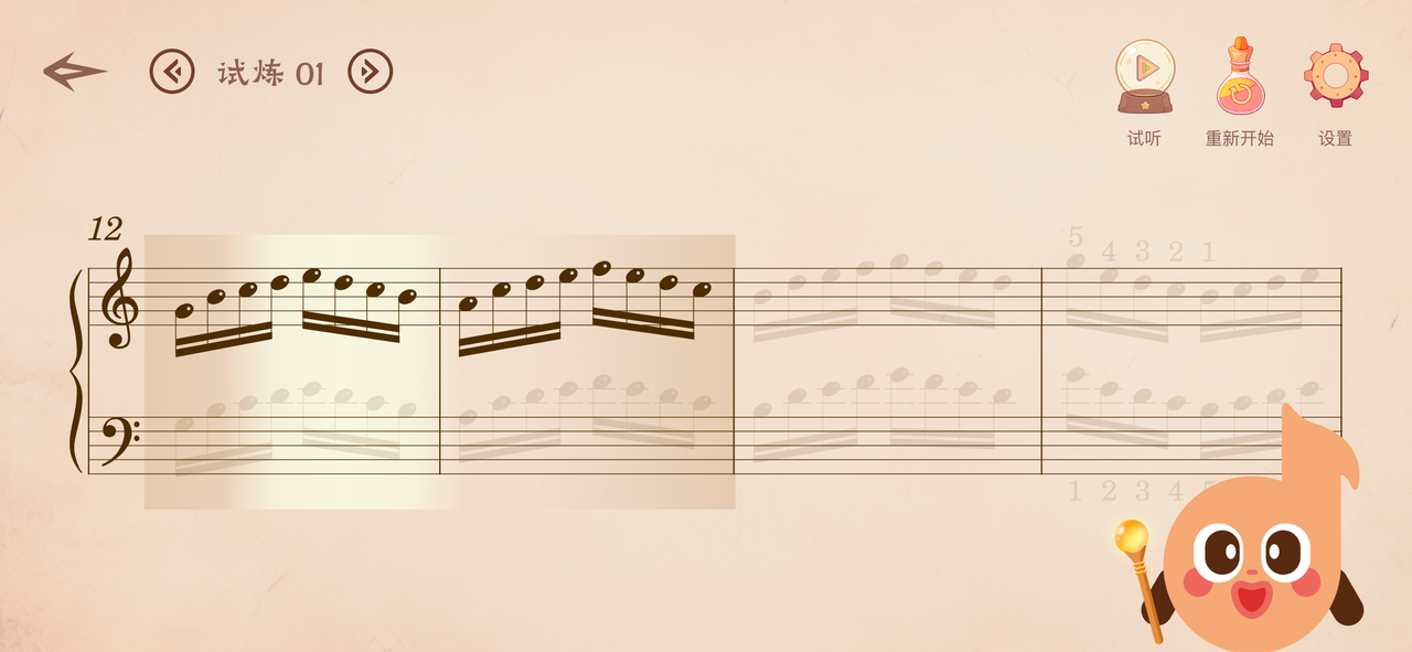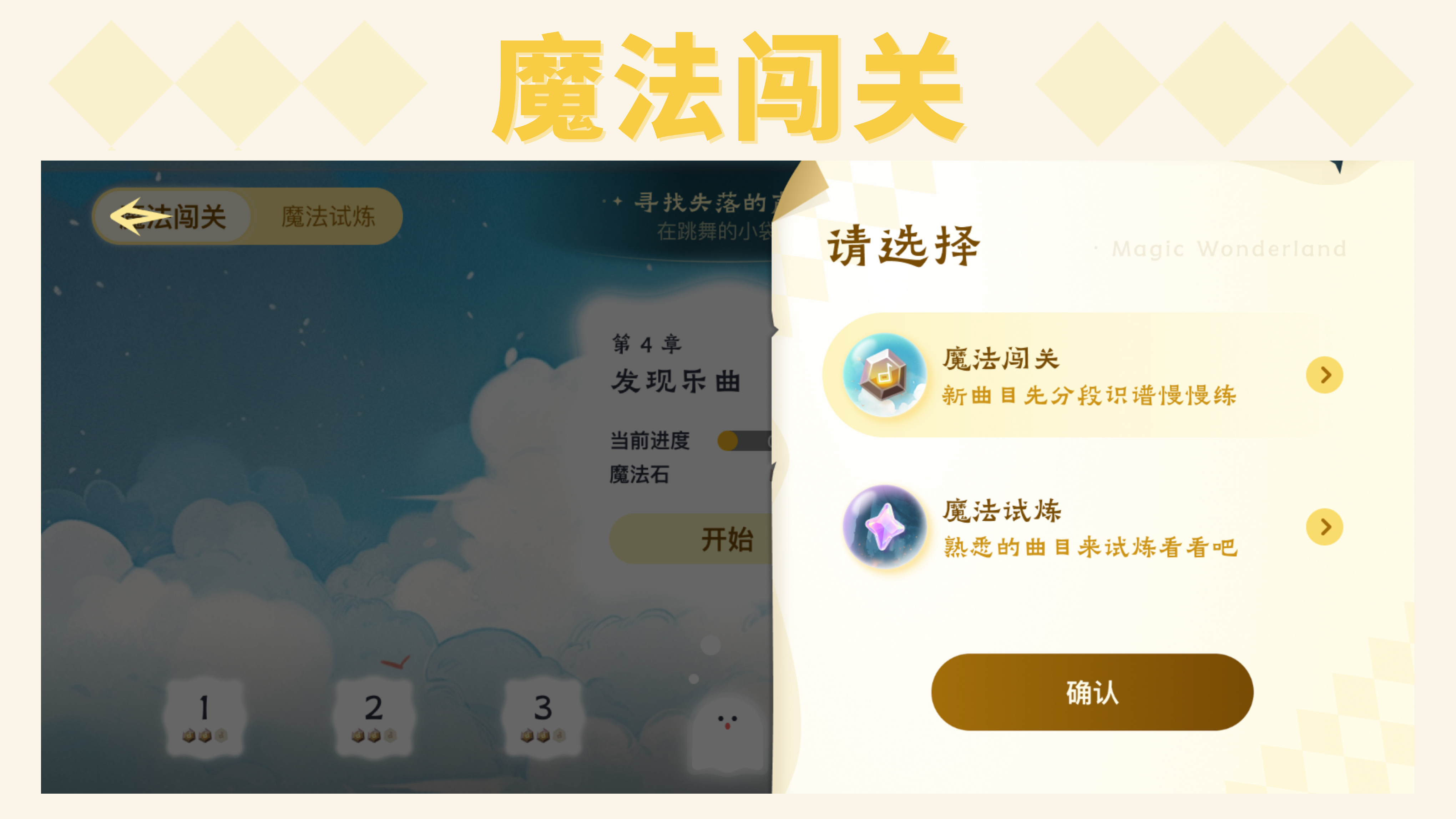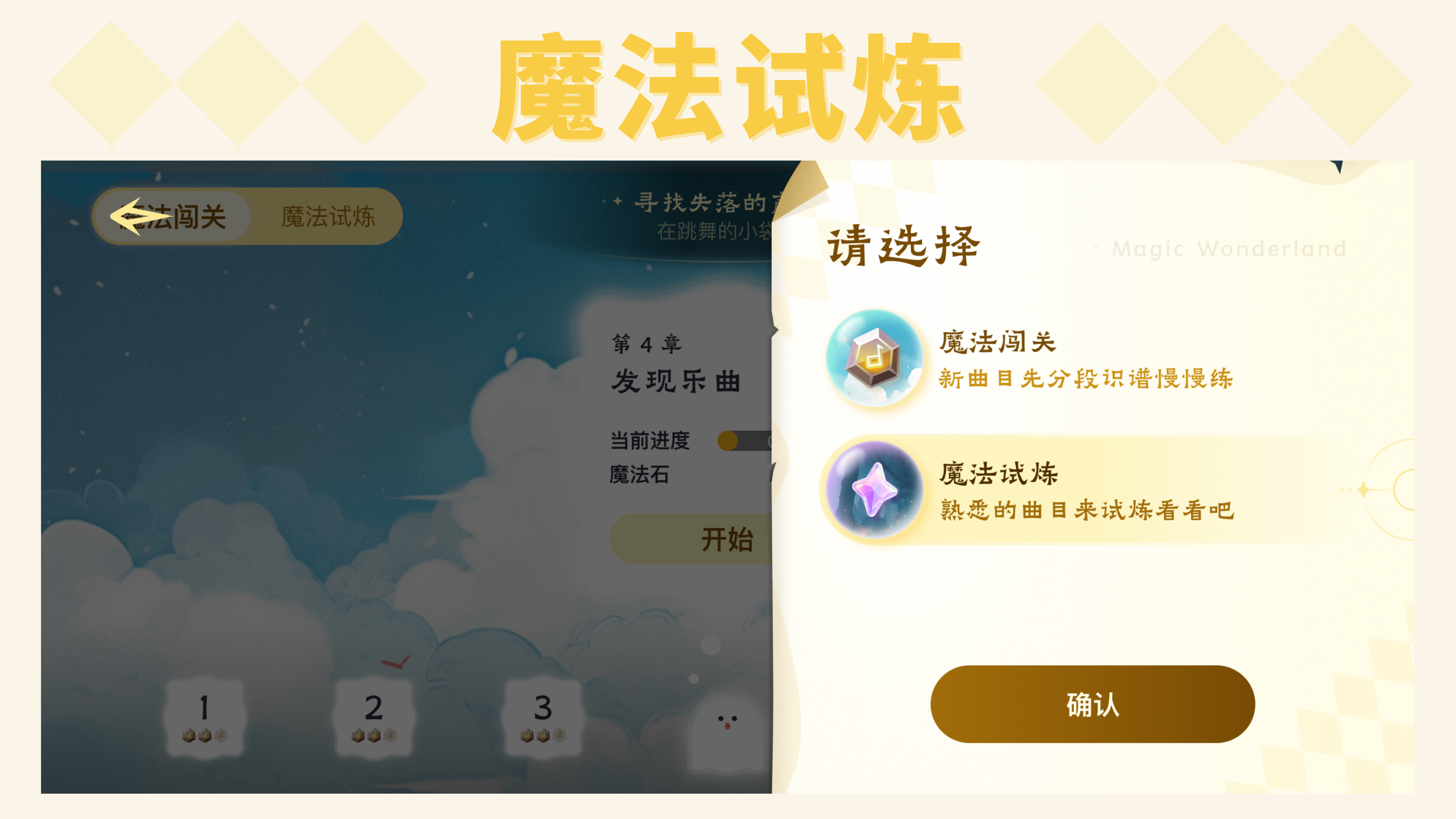 适合在练习完「魔法闯关」后选择,进一步提升你的演奏水平。