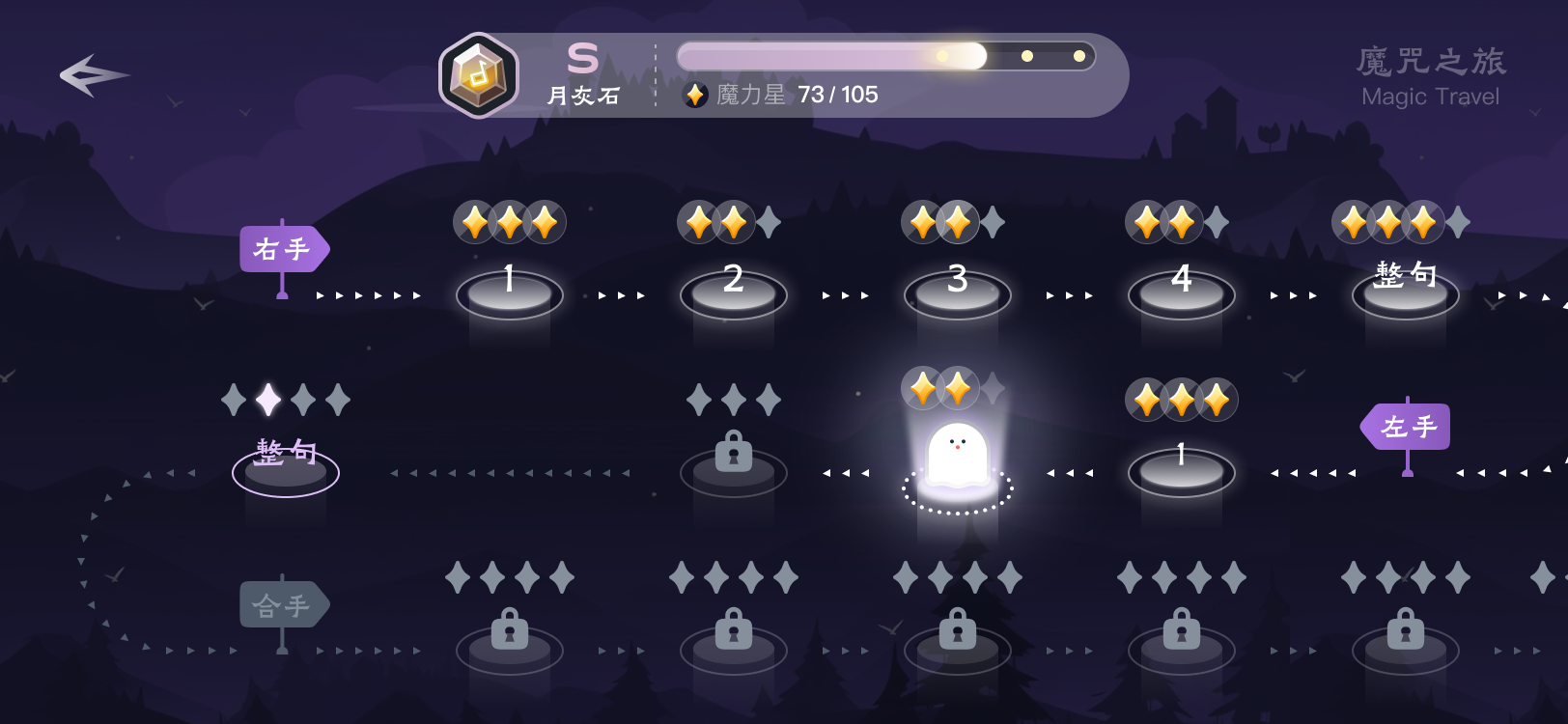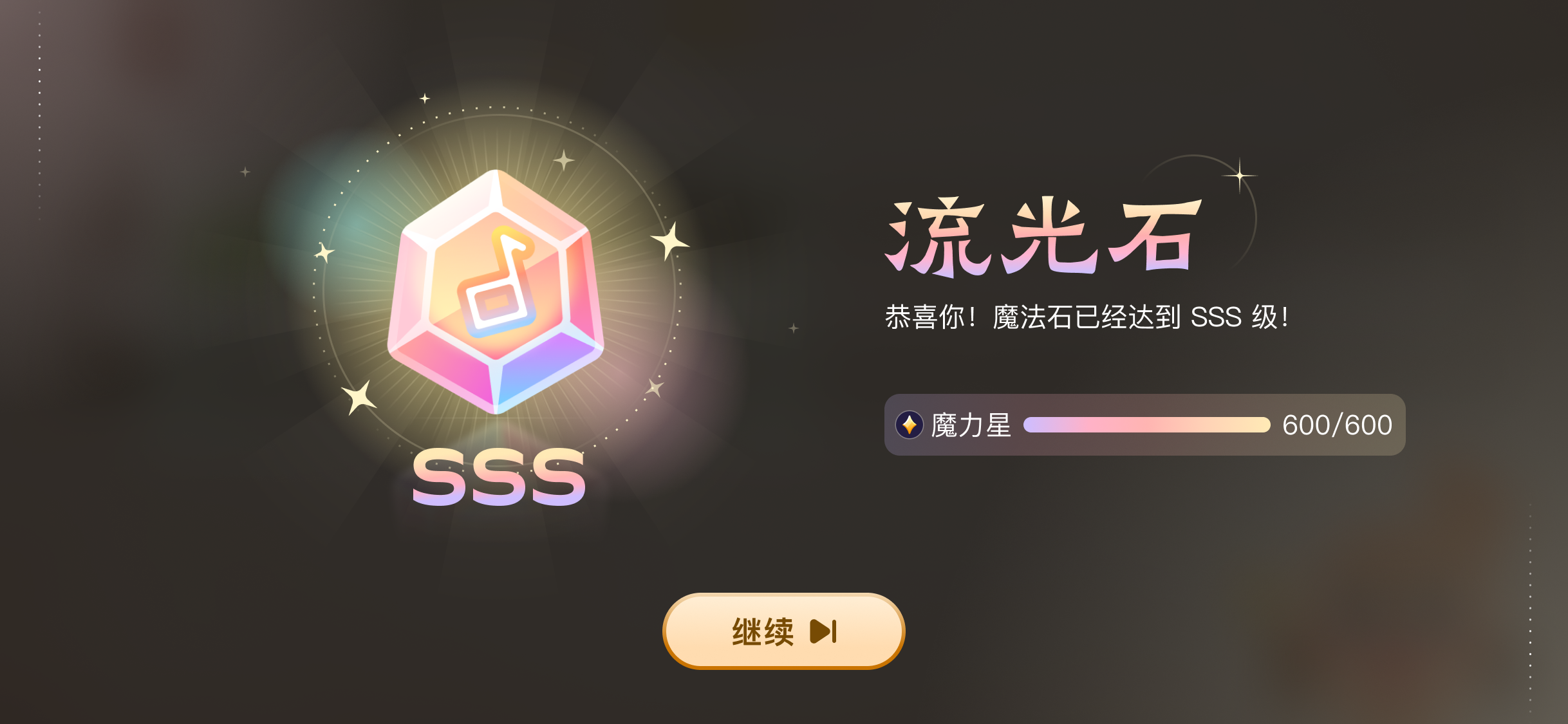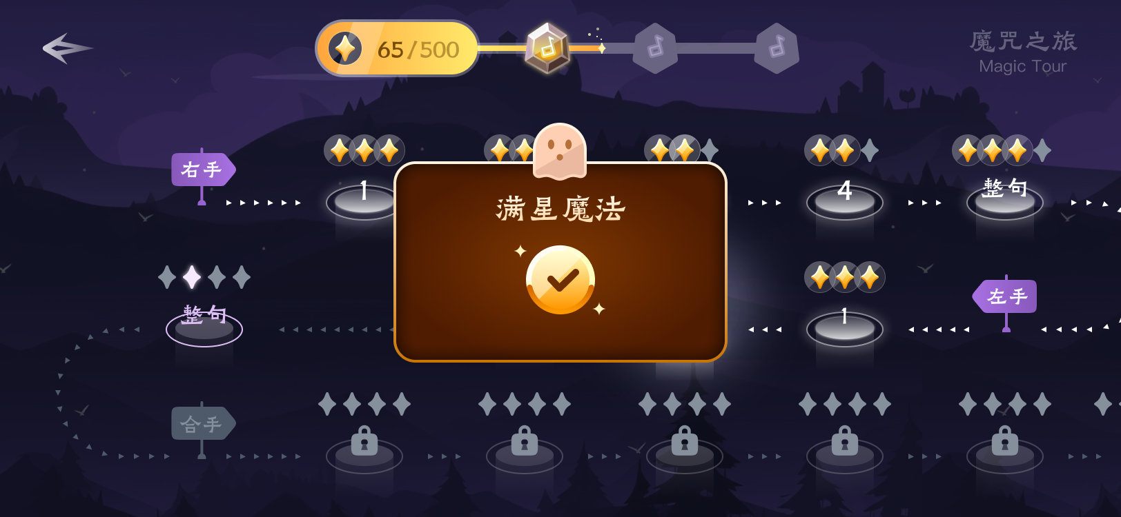 在「魔法试炼」中,每演奏完一个试炼关卡,会得到进阶魔力星奖励。(进阶魔力星以后会发挥大作用哦!)