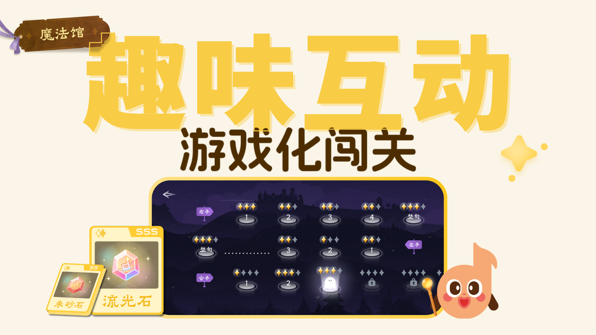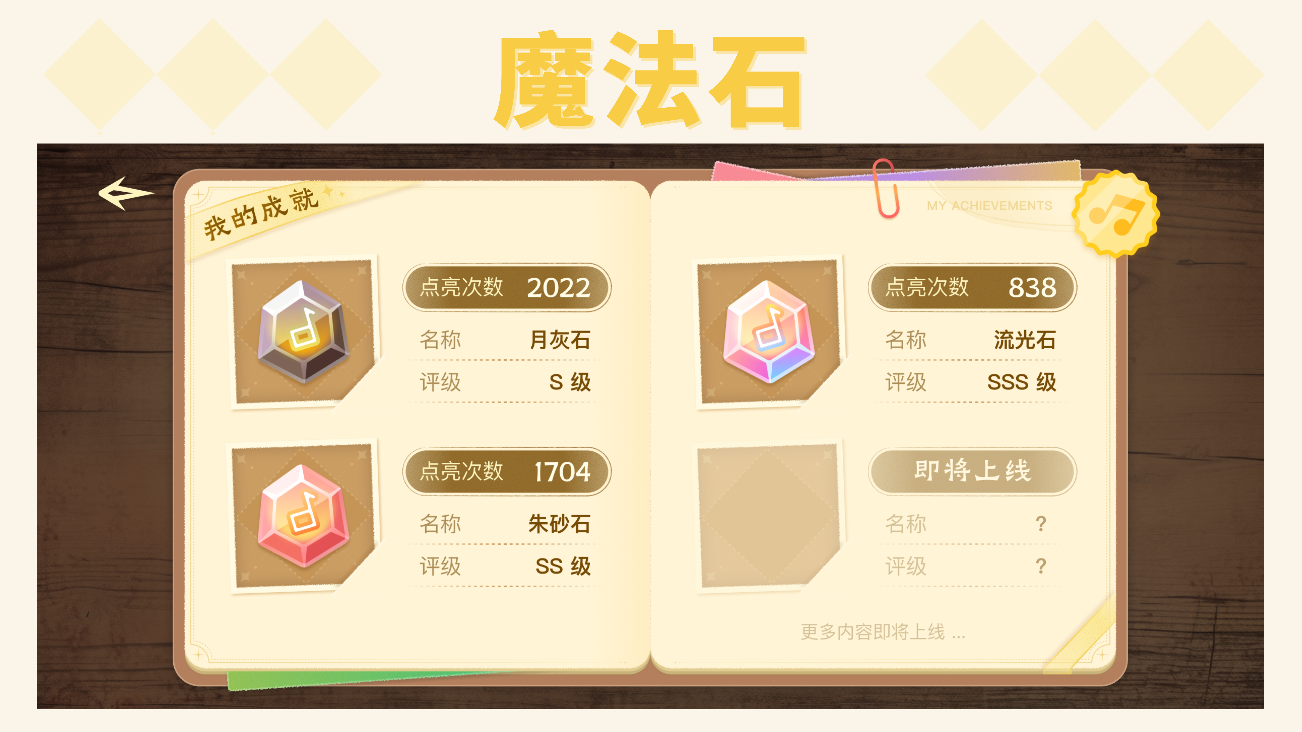 我们希望通过收集、升级漂亮的魔力星与魔法石,能够激励你把每一个乐句都练到最好!