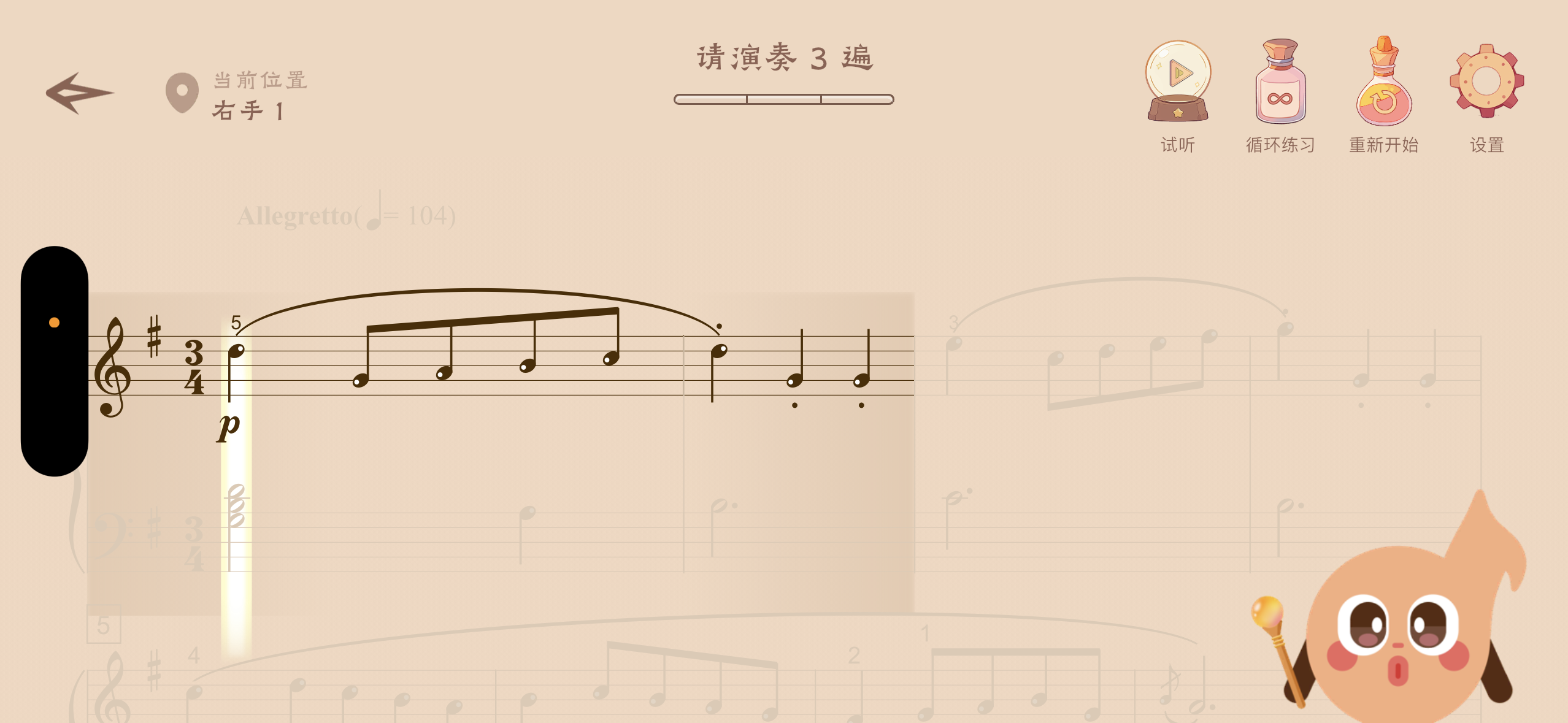 · 渐进式闯关学习:将乐谱拆成乐句(大关卡),再将乐句拆分成易于掌握的小段(小关卡)