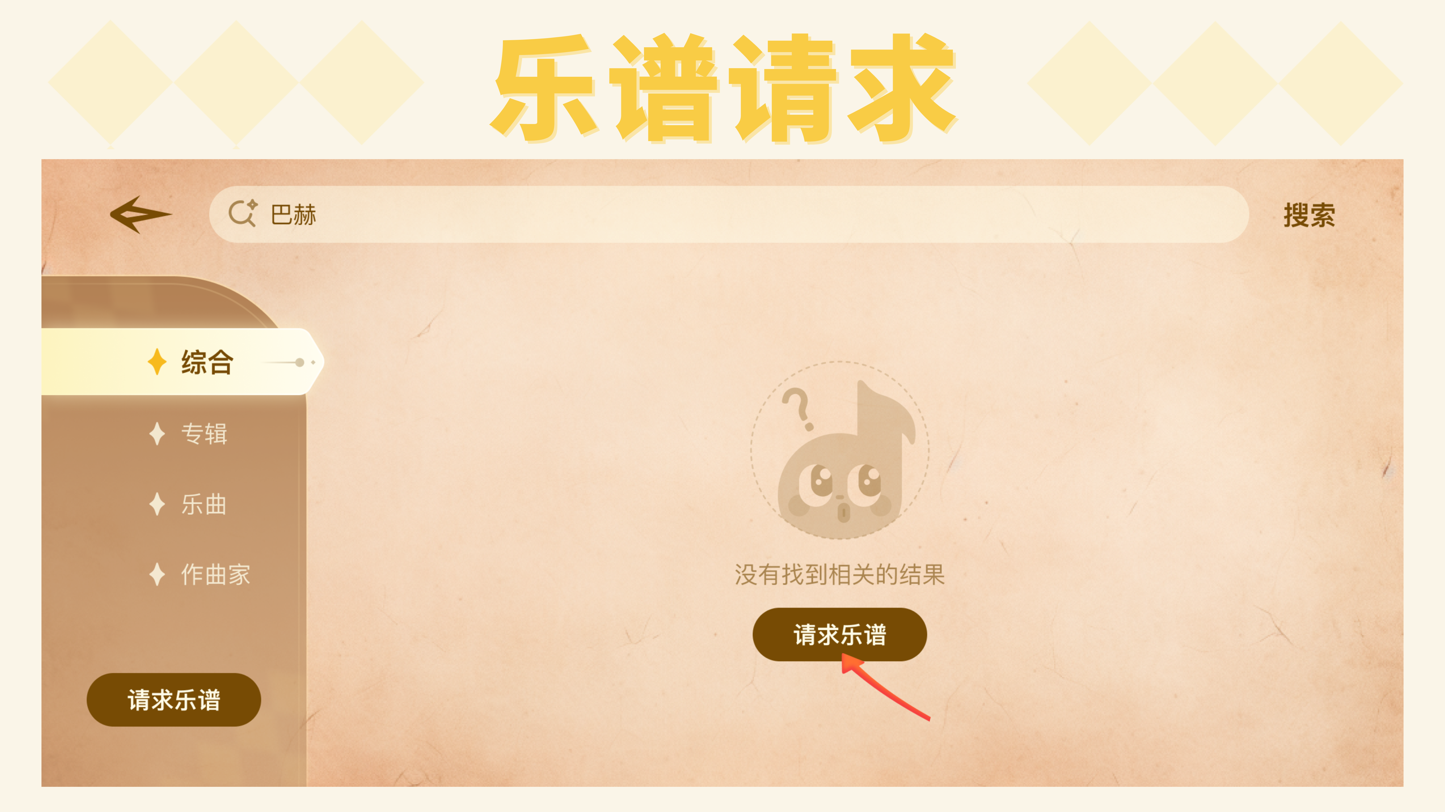 1. 直接点击页面底部的「请求乐谱」,填写相应表单并提交后,我们就能收到你的请求!
